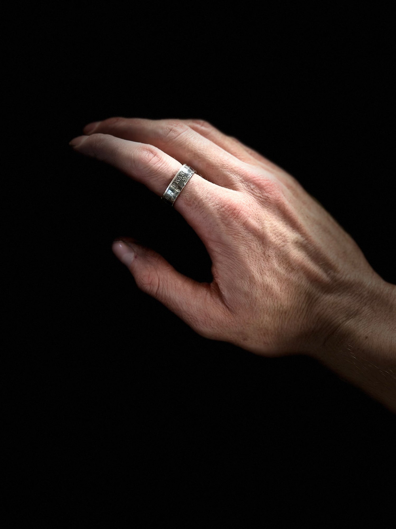 Argent 900‰ avec quelques grammes de cuivre augmentant la dureté et la longévité de la bague.