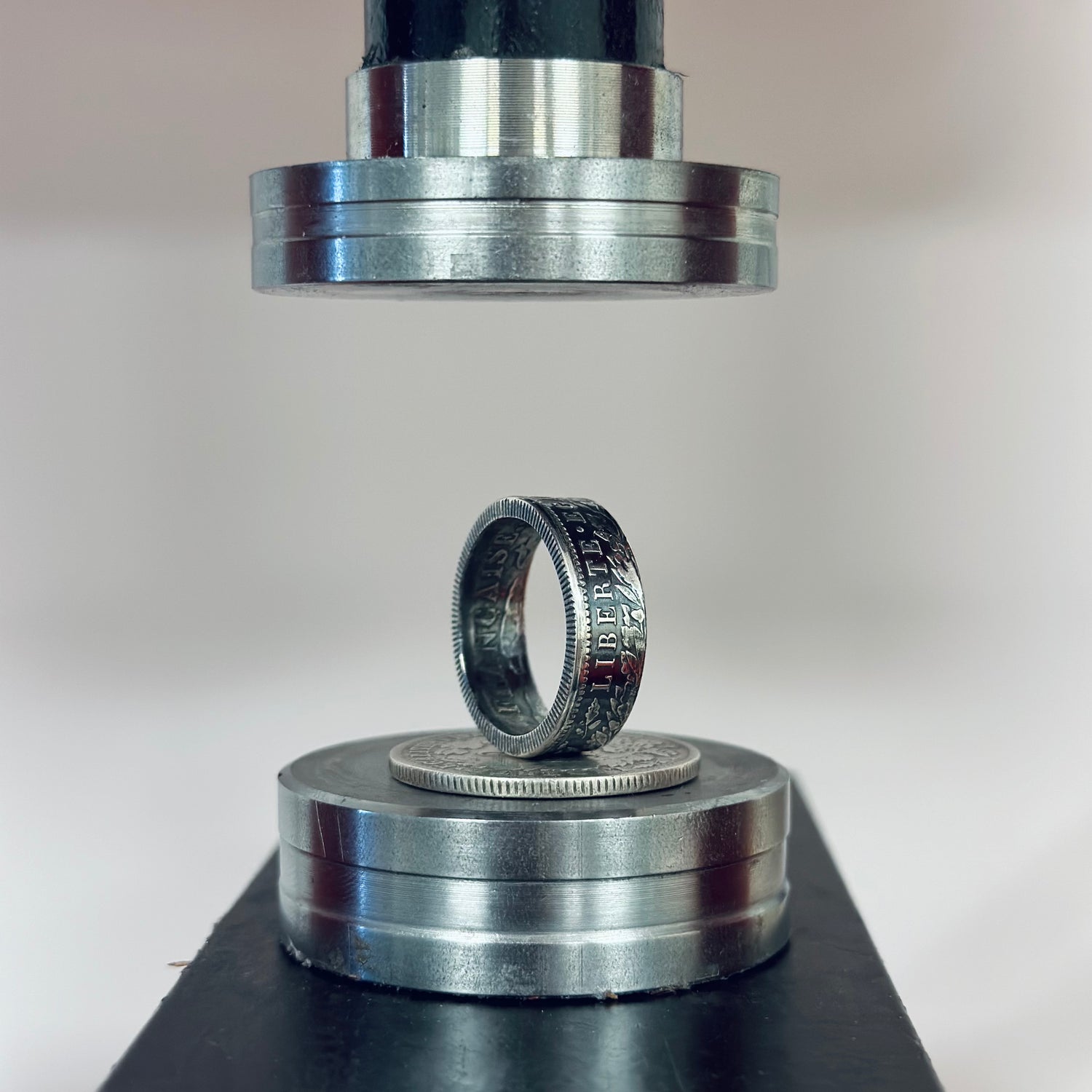 Bague en argent 835‰ fabriquée à partir d'une pièce française 2 Francs Cérès.