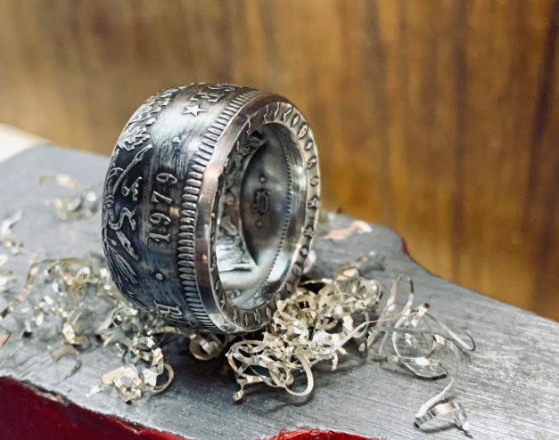 Argent 900‰ avec quelques grammes de cuivre augmentant la dureté et la longévité de la bague.