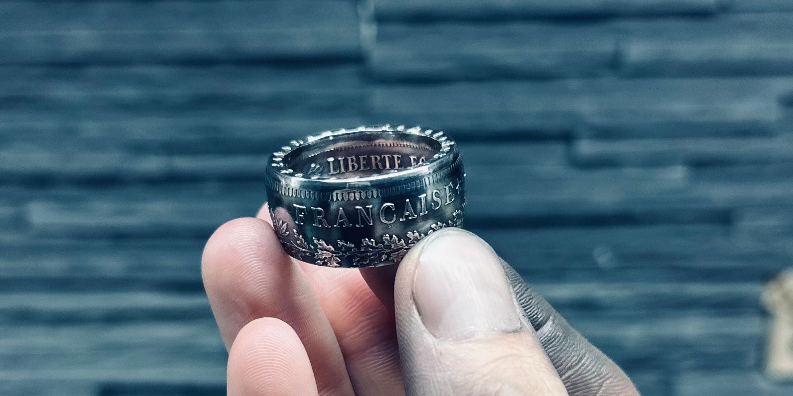Argent 900‰ avec quelques grammes de cuivre augmentant la dureté et la longévité de la bague.