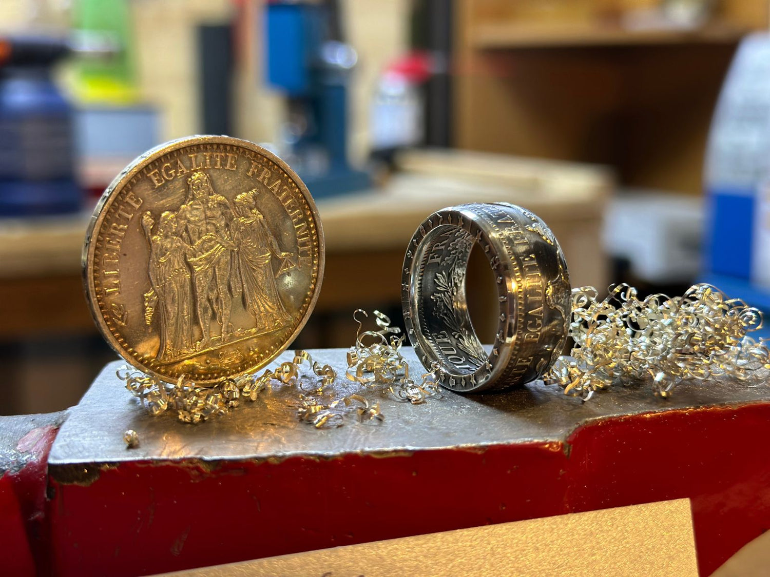 Nous appliquons une patine afin de faire ressortir les reliefs de la bague et nous effectuons un polissage à la main pour avoir un effet brillant.